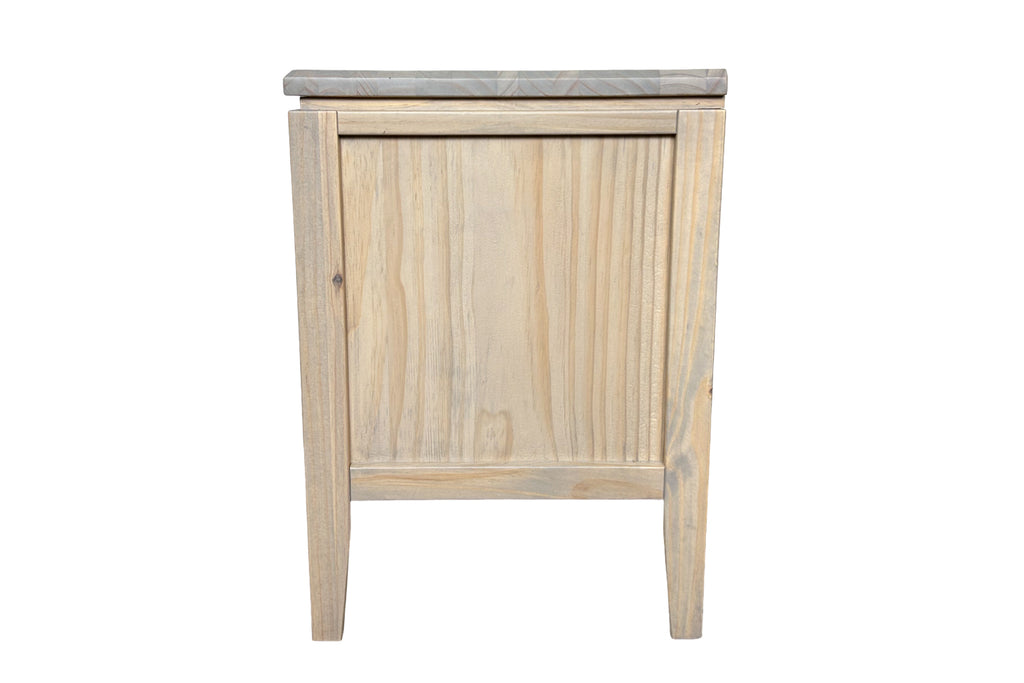This nightstand is currently displayed in our store in "Ivory". The full-range of options are available by an 8–10 week order. The "Sand (light grey) is available by a 3-4 weeks order.