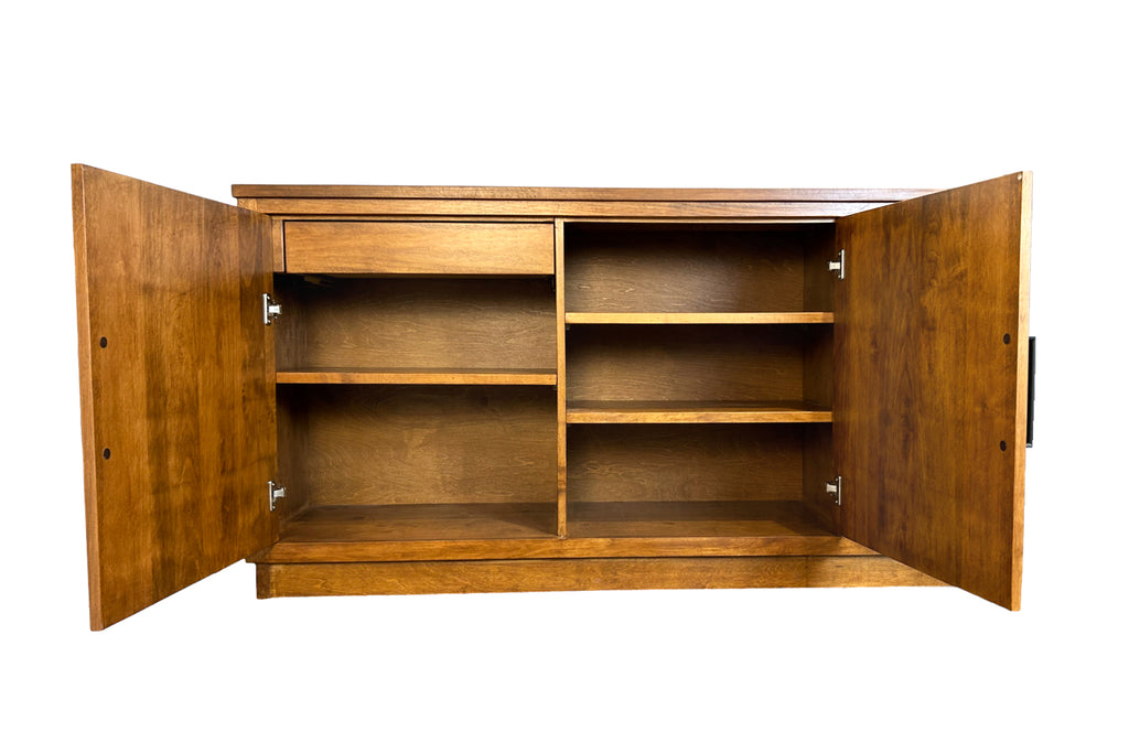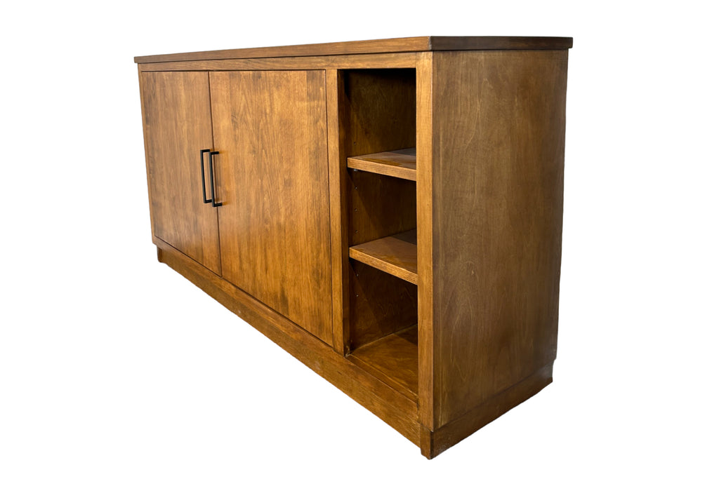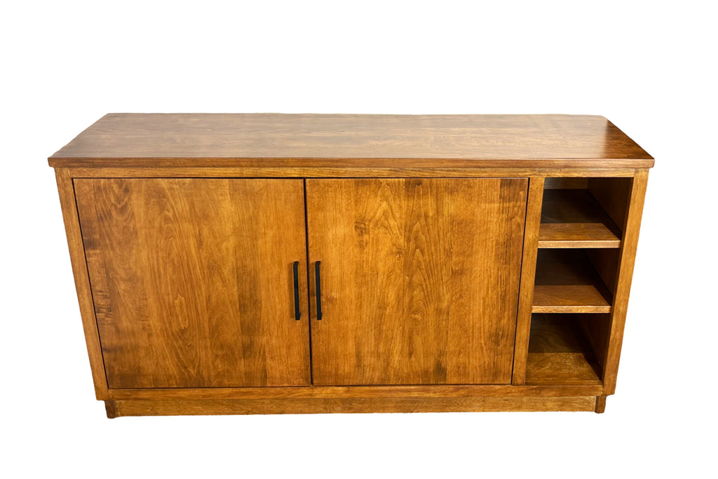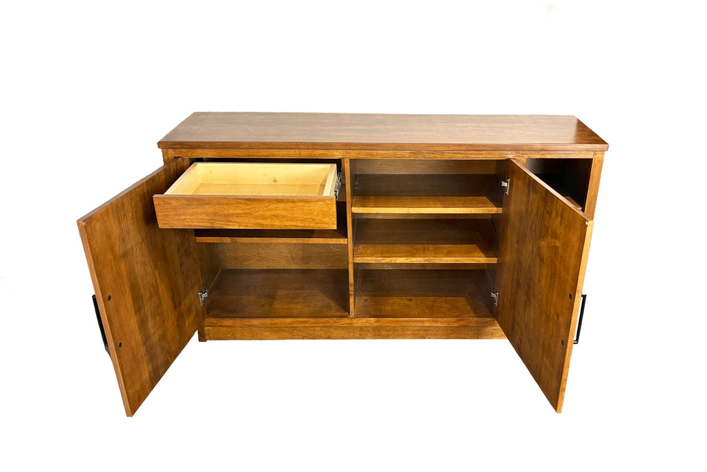 This BC-made buffet is available in multiple finishes on solid maple or oak, with your choice of hardware. It comes with large doors, adjustable shelves, and a sealed, solid pine drawer that slide smoothly on full extension ball bearing glides.