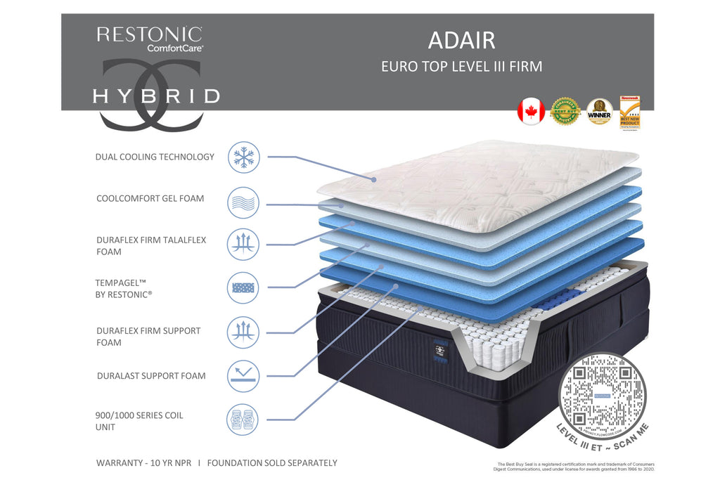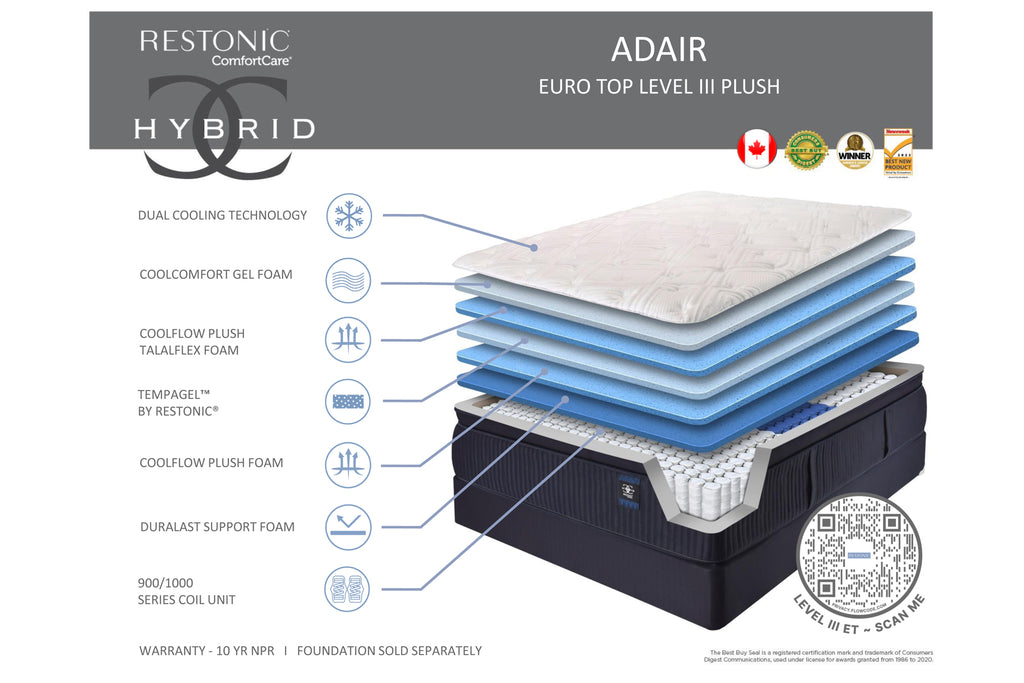 The Adair Pocket Coil Mattress comes in either Firm / Plush support that includes the following features: