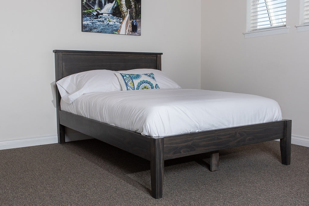 These bed frames are made in Vancouver and are available in 13 different stains on solid Pine by an 8–10 week order.